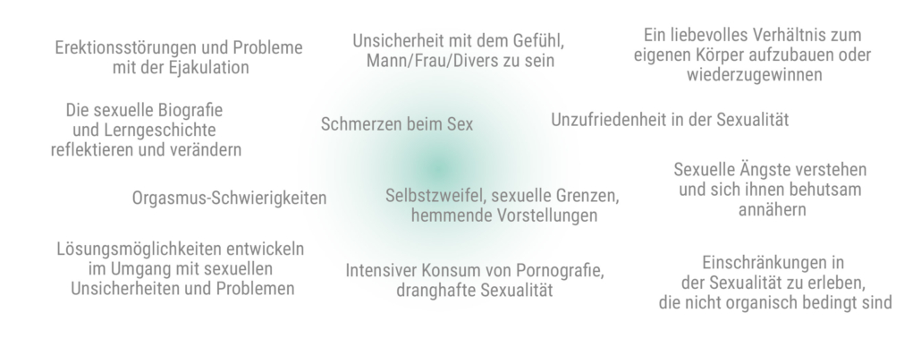 Sexualität und sexuelle Fähigkeiten sind gelernt und dadurch auch veränderbar. Oft haben sexuelle Herausforderungen mit Grenzen aus der persönlichen Lerngeschichte zu tun. Mit neuen Lernschritten, mit anderen Betrachtungswinkeln und der Auseinandersetzung mit Ihren Möglichkeiten können neue Erfahrungen gemacht werden.